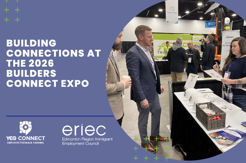 With each new focus sector, YEG Connect seeks opportunities for face-to-face research to gain direct insights into employer challenges and hiring priorities. This is exactly what the YEG Connect team did at the Builders Connect Expo earlier this year, where construction employers gathered to connect, discuss industry innovations, and engage with vendors showcasing new solutions. YEG Connect was proud to be part of the event, offering employers insight into our initiative to reduce hiring bottlenecks when recruiting newcomer talent.